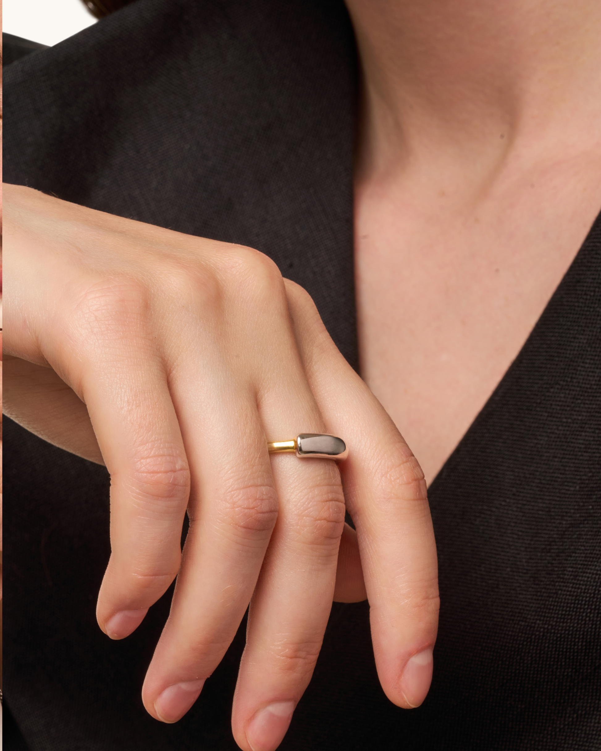 - Silver above, gold beneath — a curve that never resolves. Balanced, grounded, quietly bold.